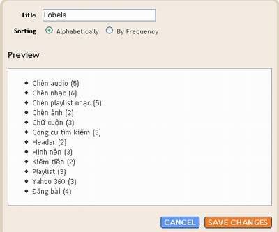 -Labels: Tên tiện ích. Ví dụ: Phân loại, Chuyên mục,..