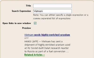Newsreel lấy những tin ngắn được cập nhật từ http://news.google.com/ theo từ khóa.