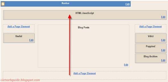 Bấm vào nút Add A Page Element nằm trên cùng để tạo 1 HTML/Javascript widget với tiêu đều rỗng. Nội dung của widget đó là: